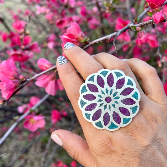 Anillo Cuarzo Rosa y Bronce